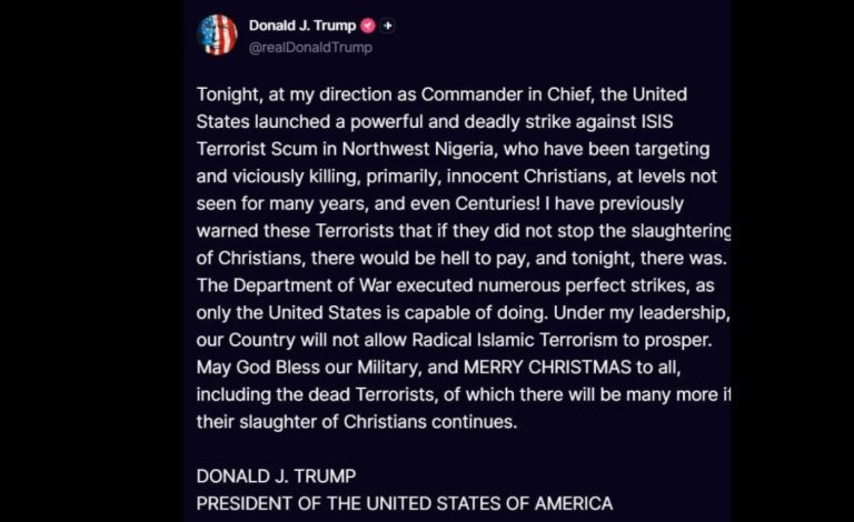U.S. President Donald Trump on Thursday announced that American forces had carried out what he described as a “powerful and...