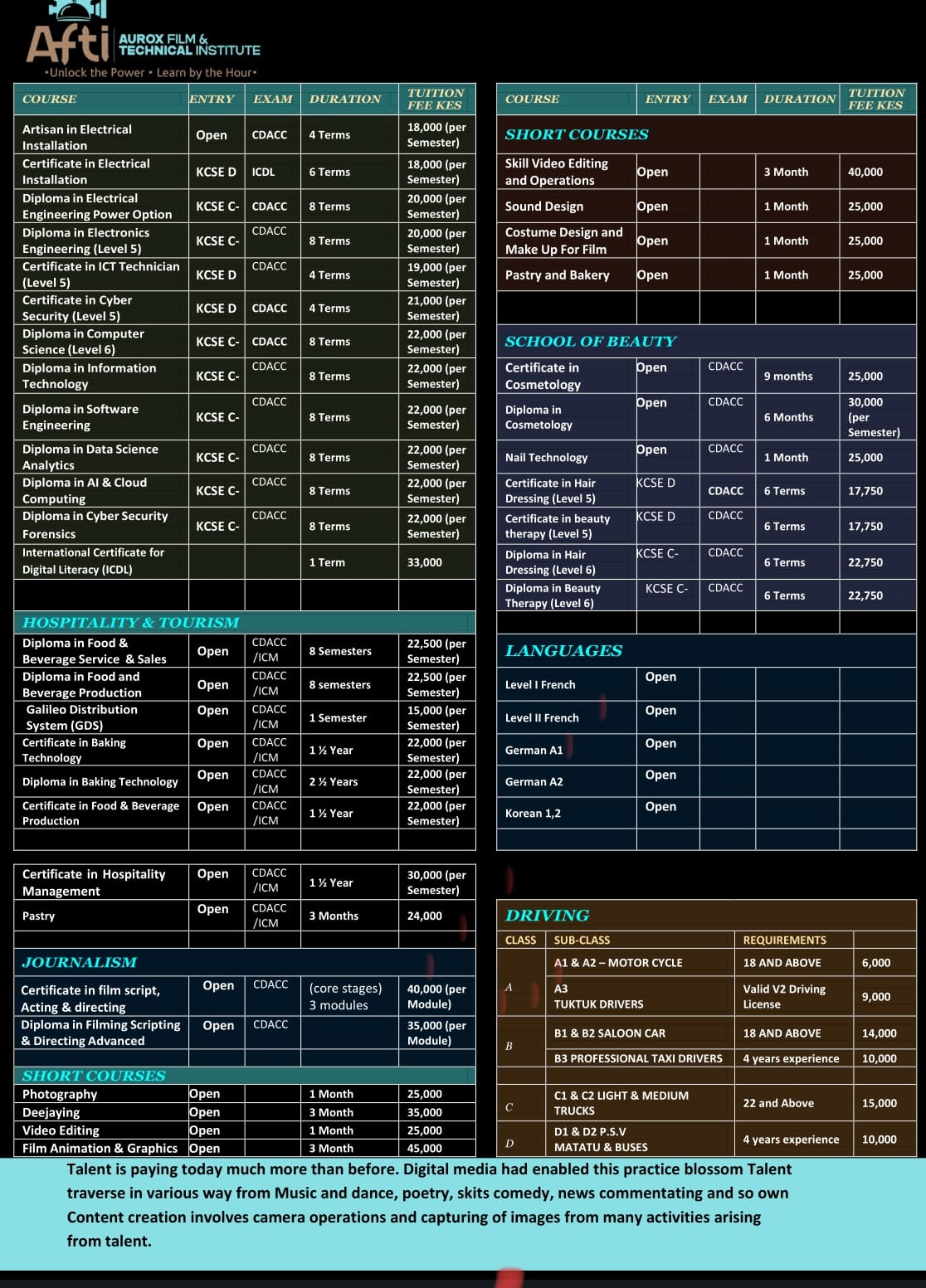 Talent is paying today much more than before. Digital media had enabled this practice blossom Talent traverse in various way from Music and dance, poetry, skits comedy, news commentating and so own Content creation involves camera operations and capturing of images from many activities arising from talent.